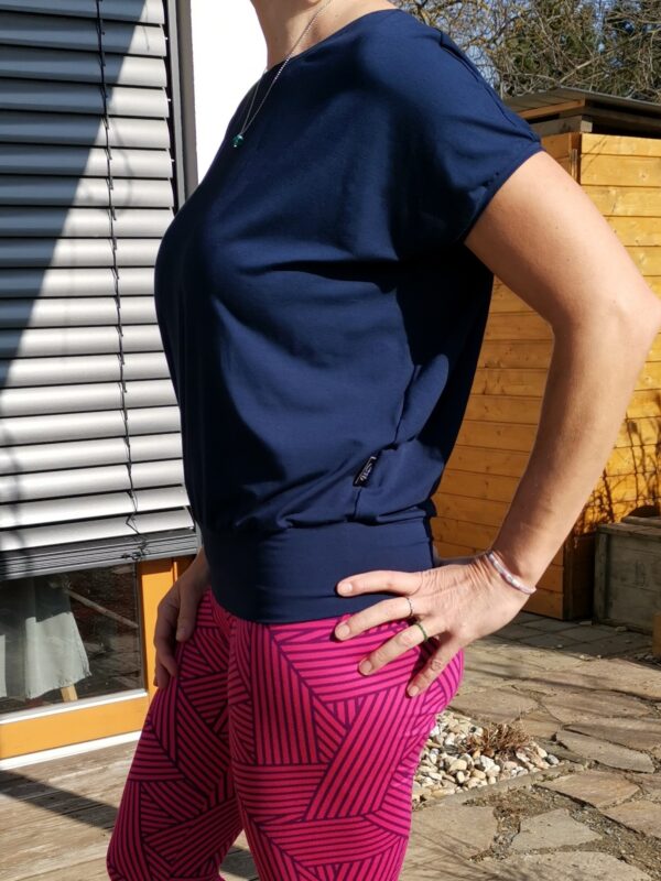 Volné tričko zužujíce se směrem k pasu a stažené do vyššího patentu. Tričko nabízí dostatek volnosti i pro štědře vybavené dámy 🙂 Dobře kombinovatelný kousek pro každou příležitost.